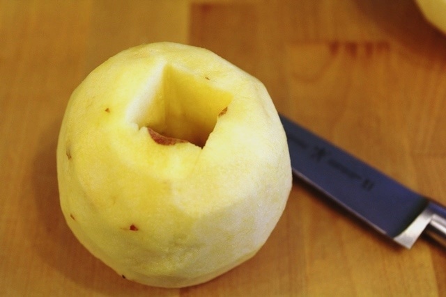 Next up are the apples. Peel and core the apples.