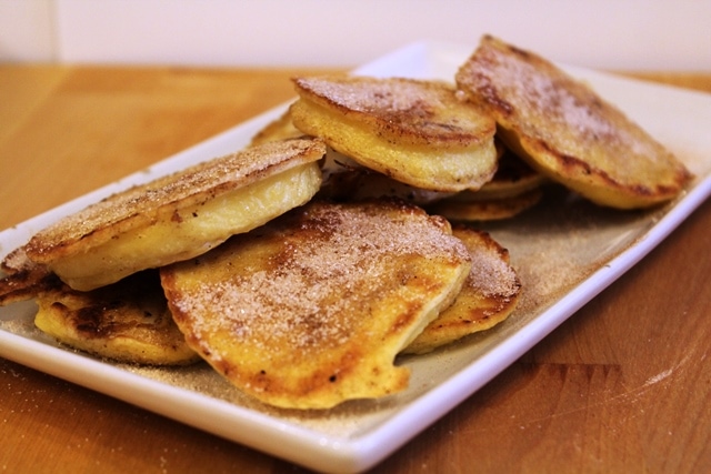 Take the batch out of the pan and serve immediately. Then, start the process over again with butter in the pan and dip and drop the apples into the pan for the next batch.