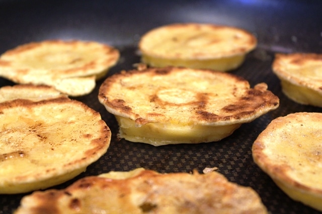I fit about 6 slices per batch in my frying pan.