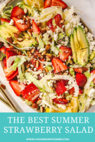 What I love about this strawberry summer salad is I can either serve it as a main dish with extra protein like salmon, chicken, or a white bean like cannellini beans. Or, I can serve it as a side dish for a crowd.