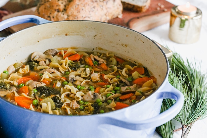 All you need is a big pot of this Chicken Noodle Soup, your favourite bread and butter, and your family and friends for a perfect Winter Gathering.