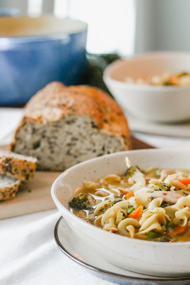 I love getting together for easy-going meals where we can enjoy each other’s company over great food. This Chicken Noodle Soup packs a ton of flavour and most of the recipe time is spent at the beginning prepping the ingredients.