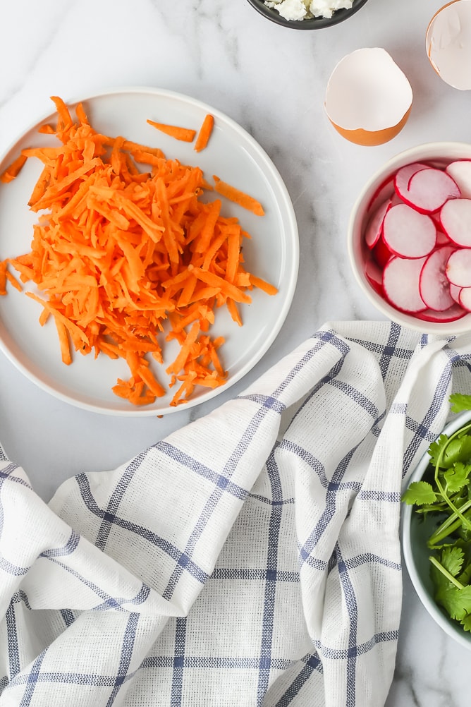 - suggested garnishes: sliced radishes, chopped cilantro, hot sauce, salsa, avocado, guacamole, diced tomato or cherry tomatoes, sour cream, sliced cabbage, kale or other greens for garnish