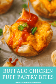 These puff pastry chicken bites are best served fresh from the oven! I don’t recommend storing them for longer than 2-3 hours.