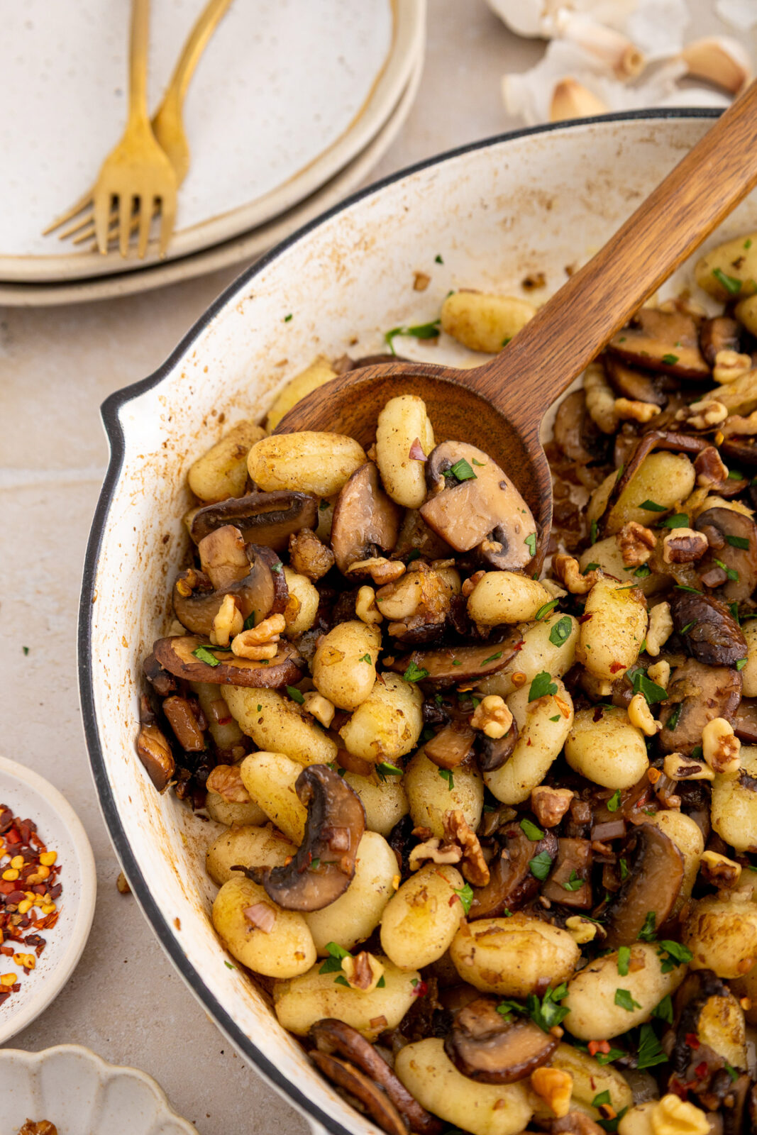 My quick asparagus gnocchi is a lovely side dish for the Spring, and this Gnocchi with Mushrooms is just the same! Sometimes side dishes are the hardest to come up with so this gnocchi with mushrooms is a great recipe to keep in your back pocket.